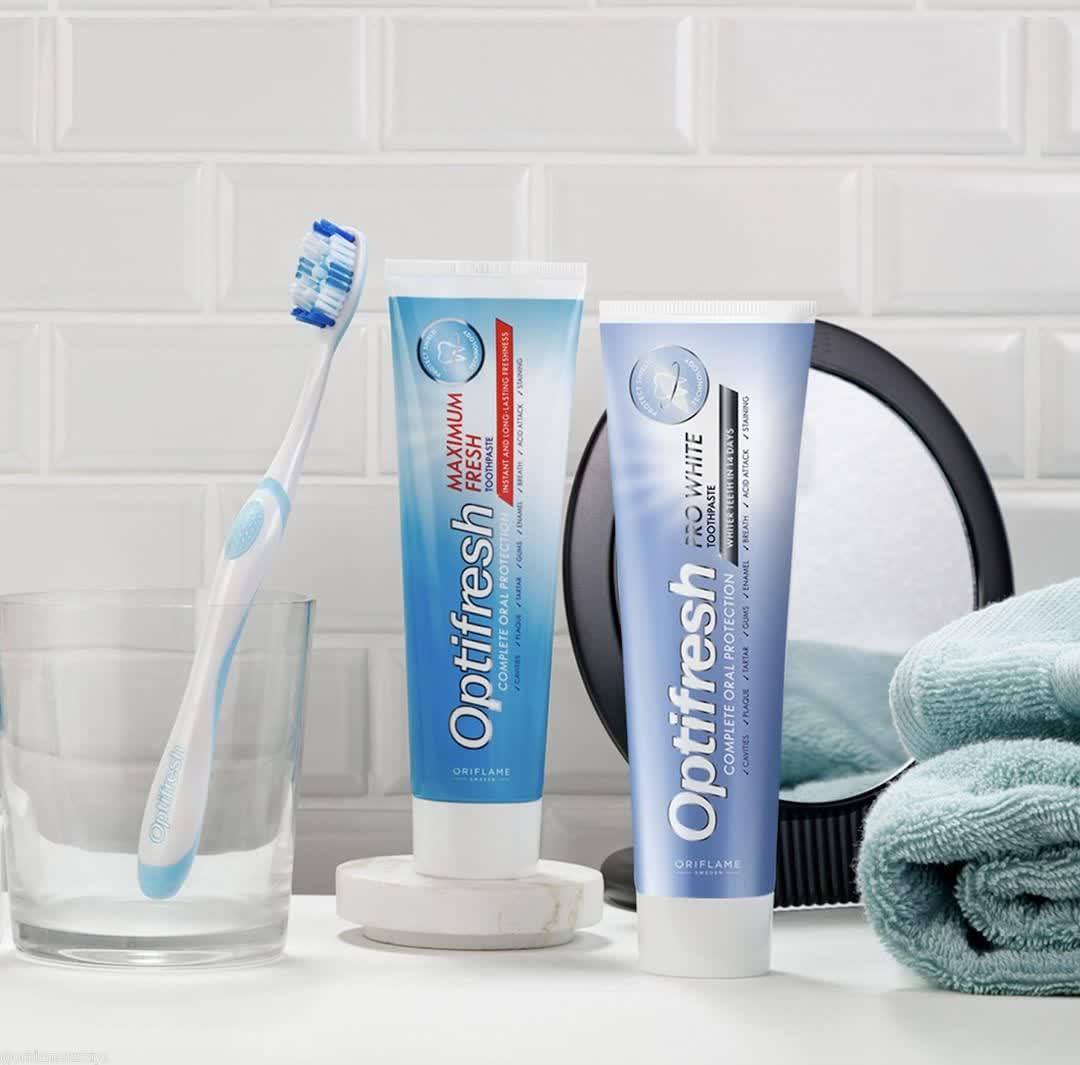 خمیردندان جدید اپتی فرش وایت درخشش و سفیدی طبیعی دندان ها را بازیابی می کند و همچنین با فناوری Protect Shield از کل حفره دهان محافظت می کند.